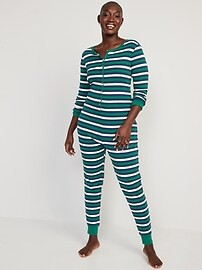 Matching Printed Thermal-Knit One-Piece Pajamas for Women