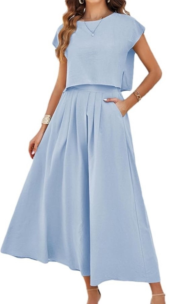 HangNiFang Summer Skirt Sets Women 2 Piece Outfits Cap Sleeve Top Elastic Waist Maxi Dress Sets w... | Amazon (US)