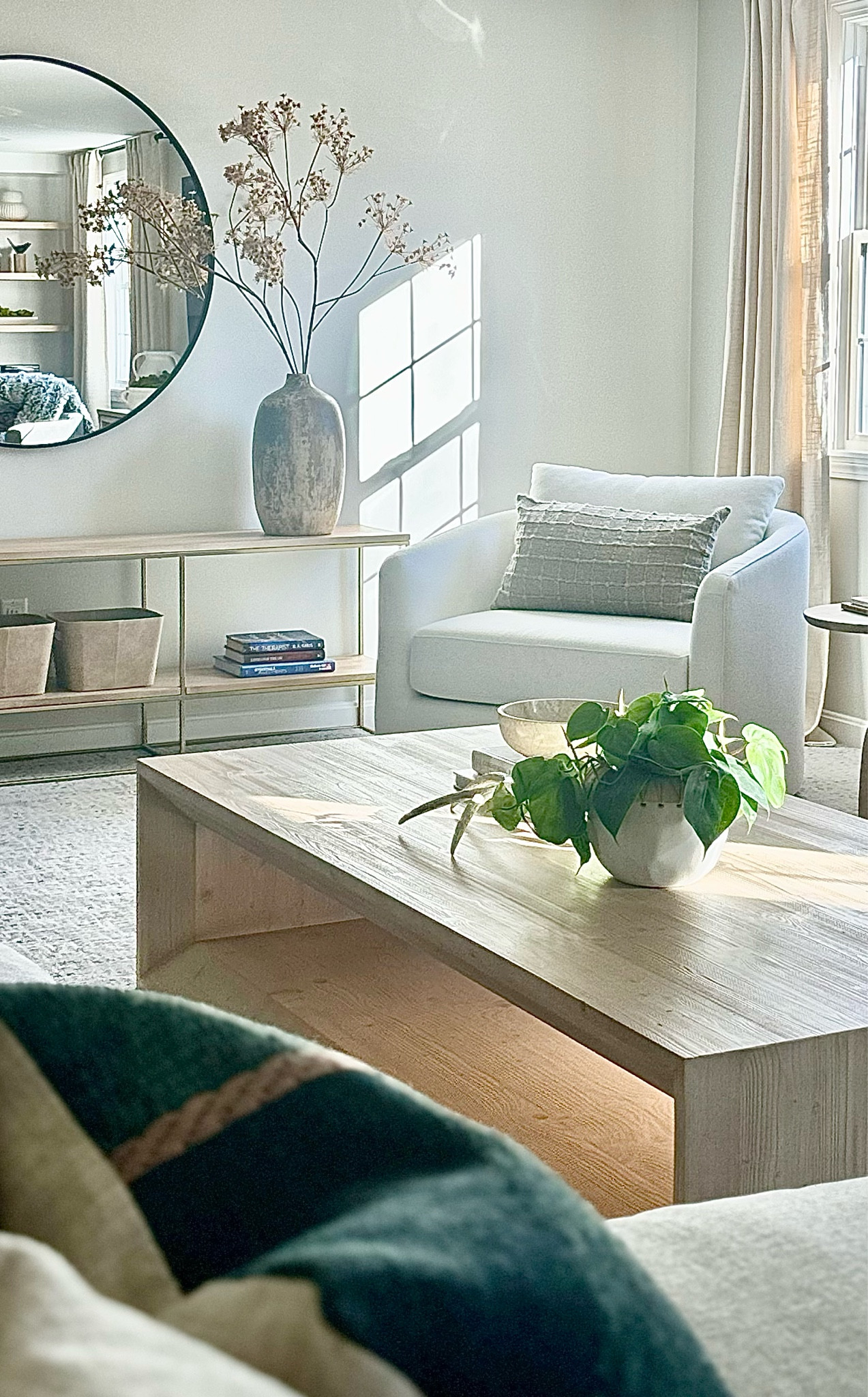 Sharing this family room transformation with you, we had the pleasure of working with a client who already had a solid foundation for their furniture. However, the room lacked the optimal layout and a sense of coziness. We thoroughly enjoyed the process of styling this space to create a warm and inviting atmosphere.