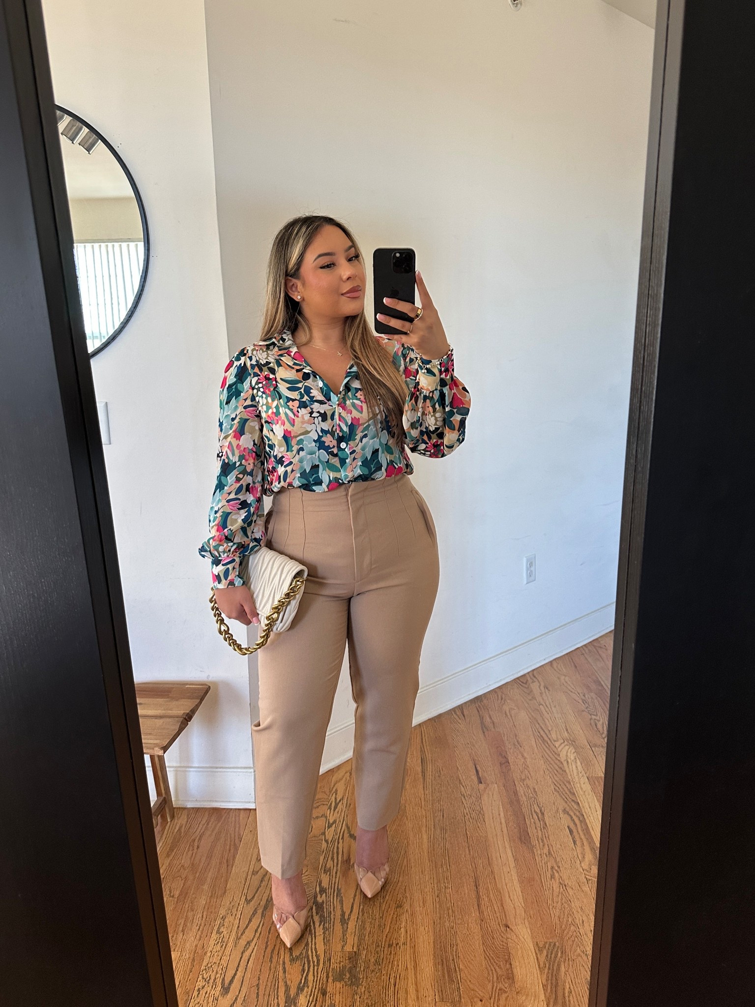 A cute formal neutral spring/summer outfit🤎