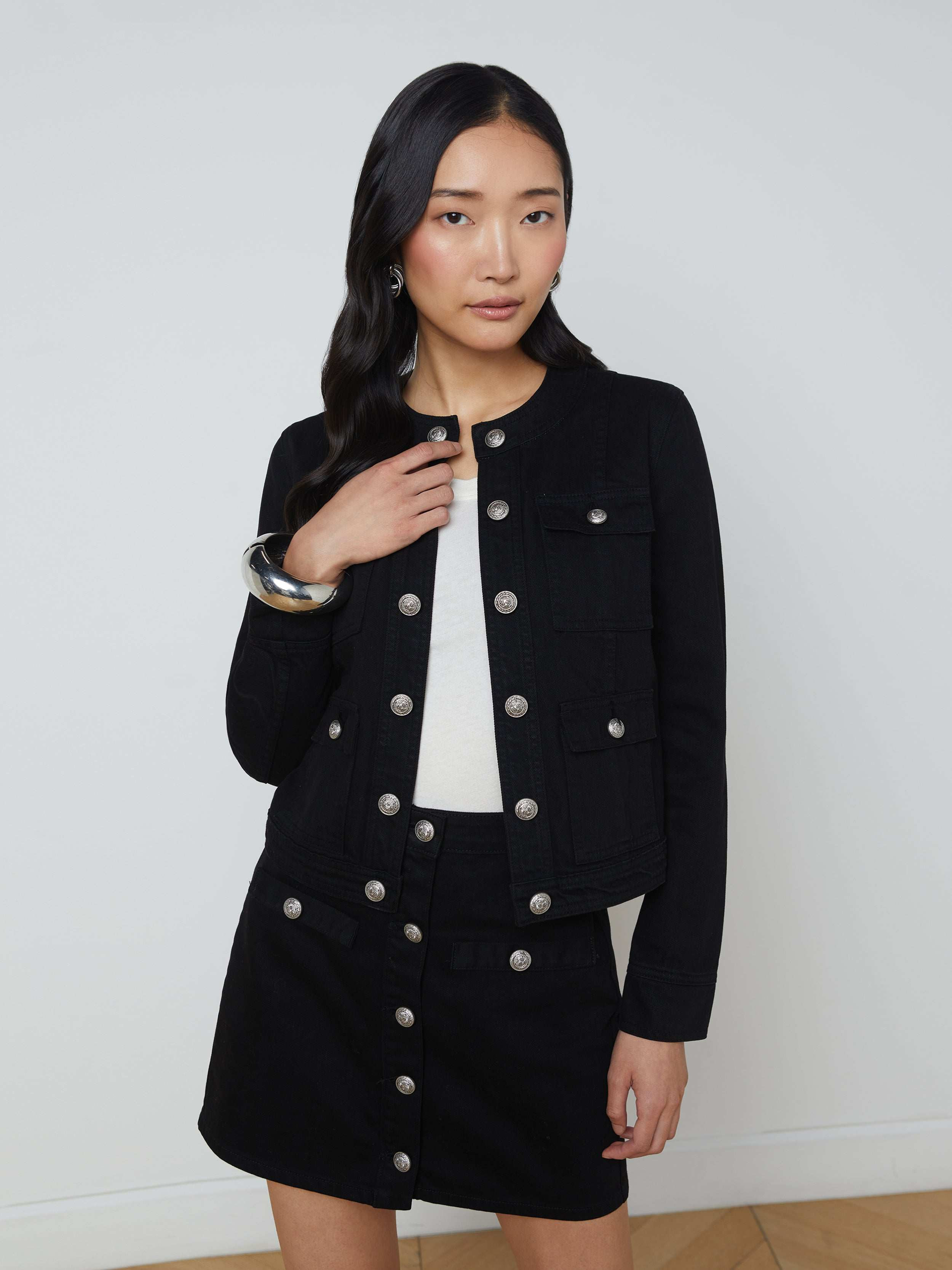 L'AGENCE - Yari Collarless Cotton Jacket in Noir