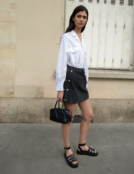 Black Denim Button Skort-BESTSELLER