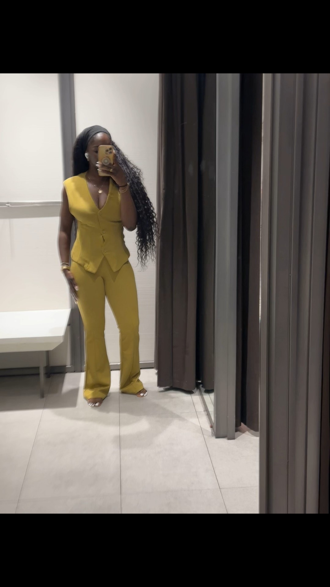 Curly hair poppin’, soft glam on, and good vibes only. The kids might be sleeping but mama is out living.