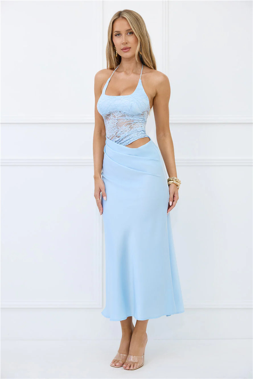 Radiate Positivity Halter Lace Maxi Dress Blue