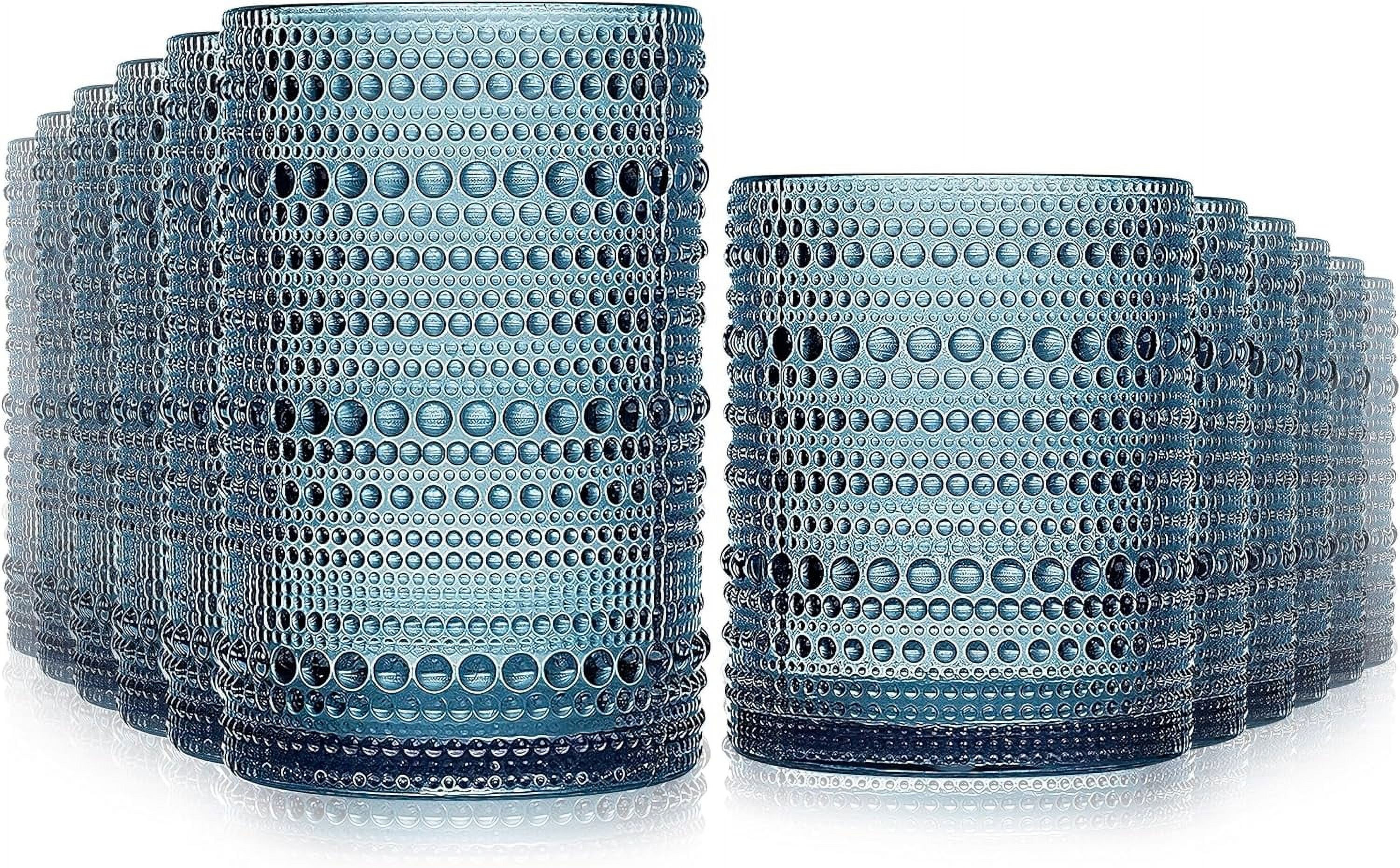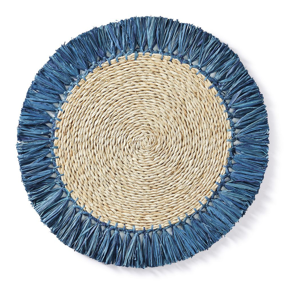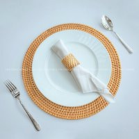 Chic tablescape with layers of block print l, bamboo dishes, rechargeable lamps, ginger jar