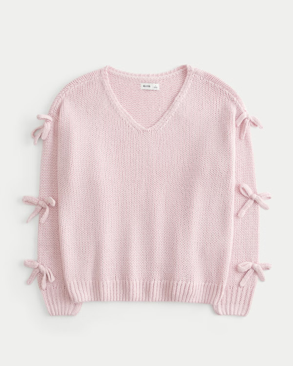 Off-the-Shoulder Bow Applique Sweater