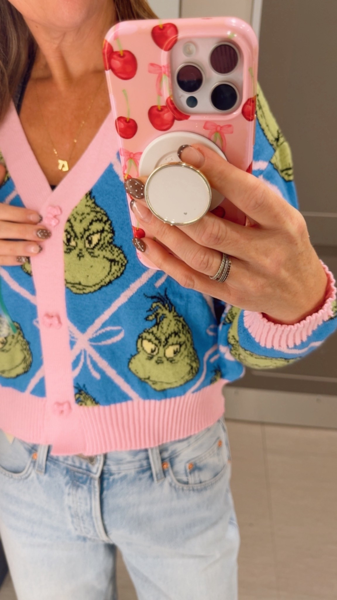 Women's Grinch Festive Graphic Cardigan - Blue | Target