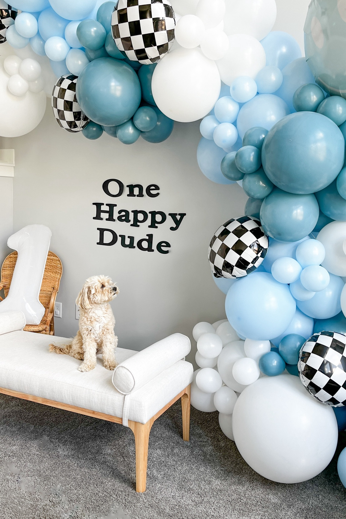 white couch, beige couch, dragon toy, puppy toy, dog toy, black, white, rug, boho, ladder, decor, home, style, interior decor, vase, tray, pillow, throw pillow, knitted pillow, handmade pillow, boho pillow, cream pillow, black pillow