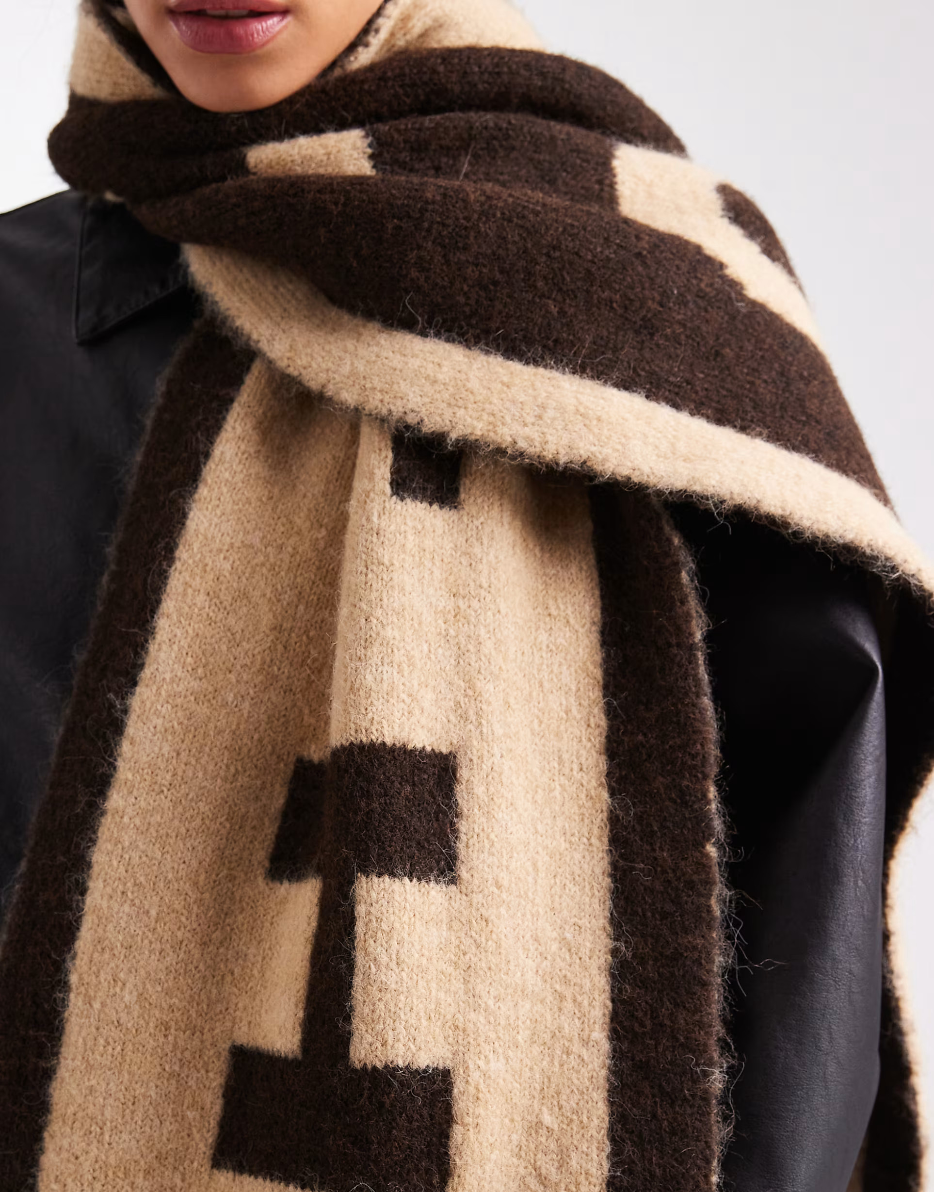 4th & Reckless wool feel contrast logo oversized scarf in camel and chocolate | ASOS
