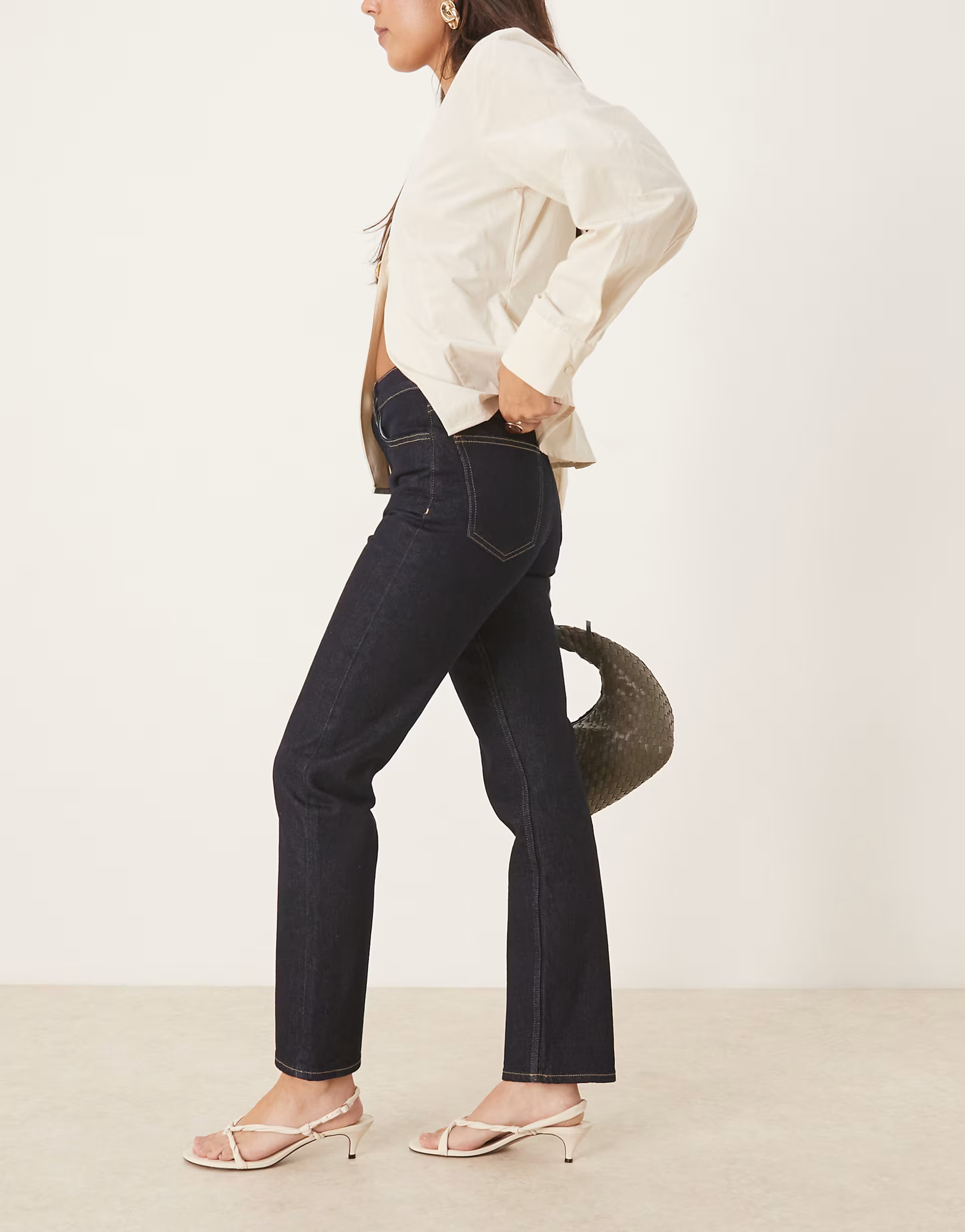 ASOS DESIGN high rise slim straight ankle grazer jean in rinse blue | ASOS