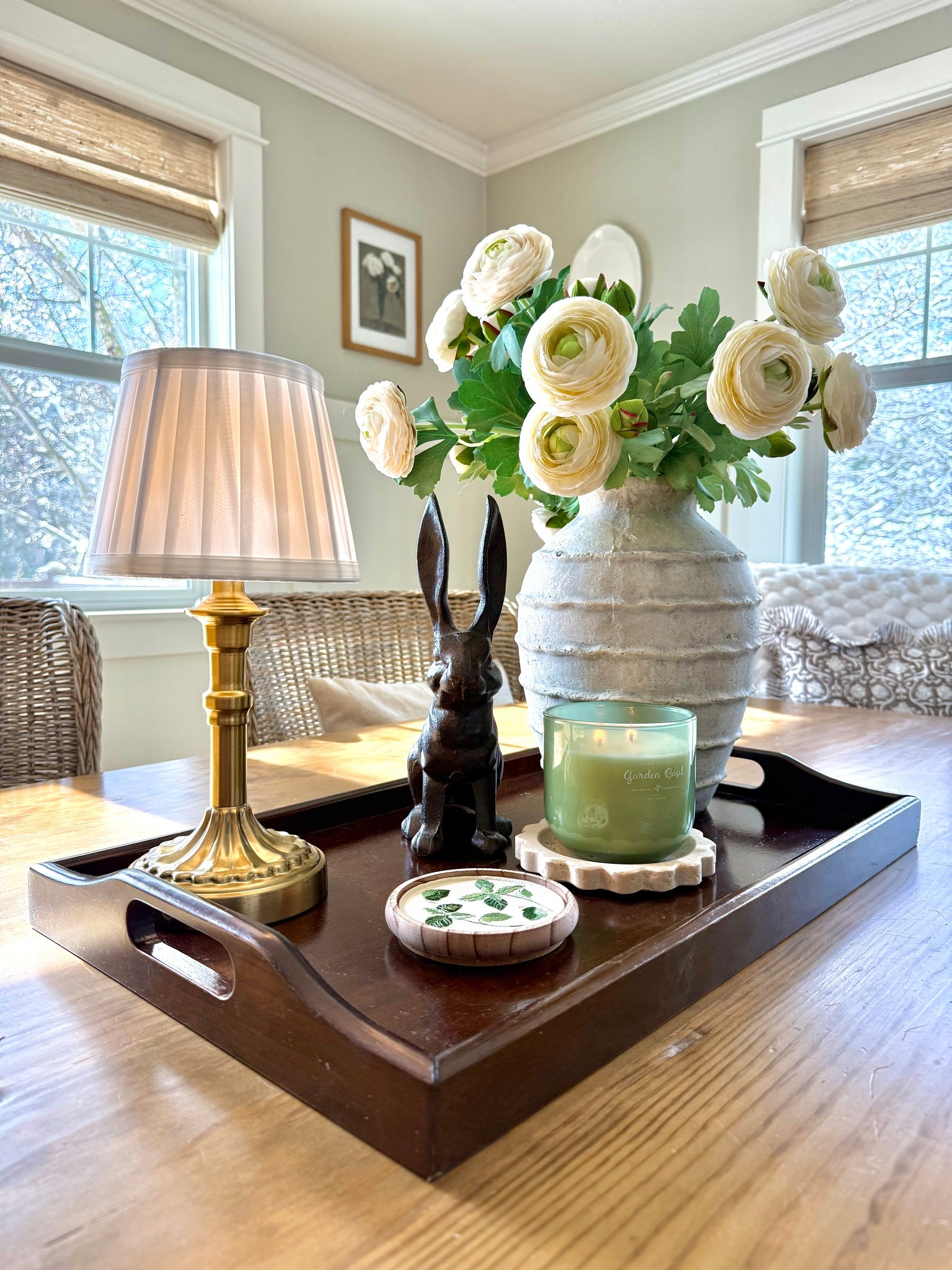 Neutral blooms that are soft and effortless, a whimsical bunny that makes you smile every single time, and a whole lot of proof that the best styling ideas come from thinking just a little sideways. 🌸