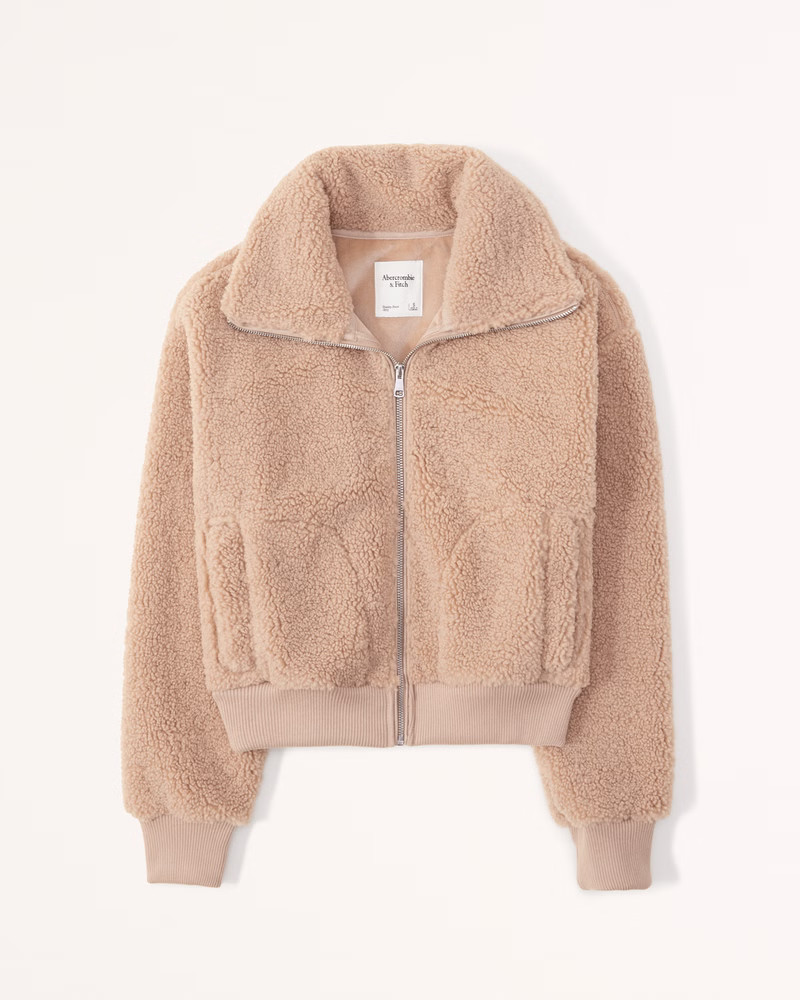 Women's Cropped Vegan Suede Shearling Jacket | Women's New Arrivals | Abercrombie.com