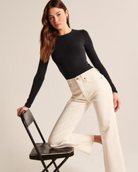 Long-Sleeve Tuckable Cotton Seamless Crew Top