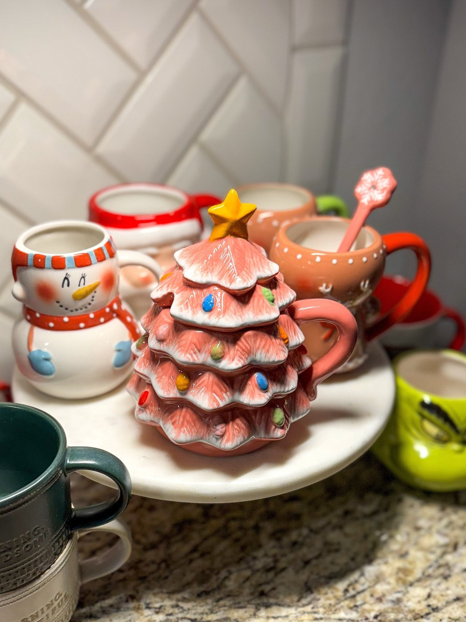Mr. Christmas Lidded Nostalgic Tree Mug with Spoon - Pink, 16 Fluid Ounces | Amazon (US)