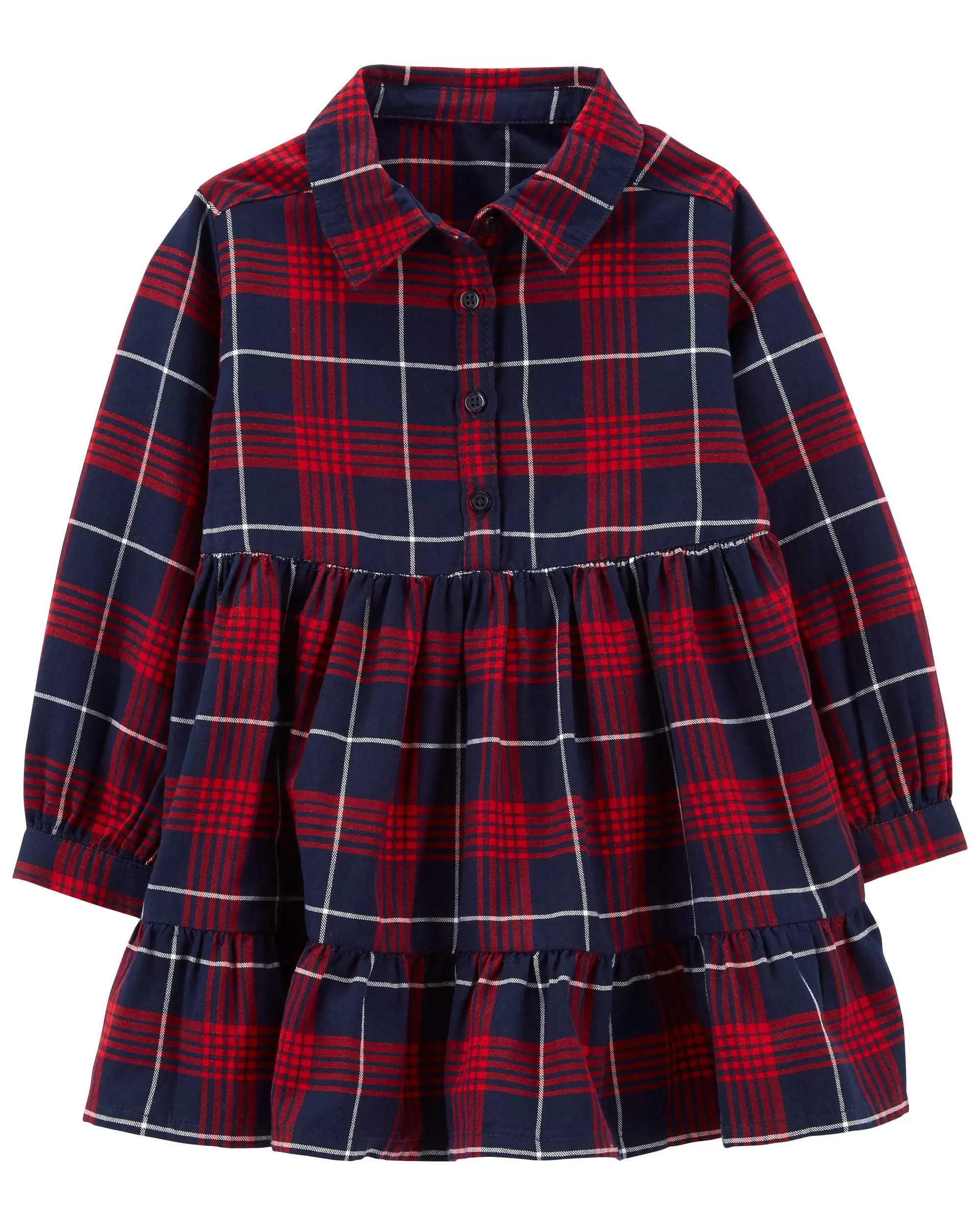 Toddler Family Matching: LENZING™ ECOVERO™ Plaid Shirt Dress With Ruffles
