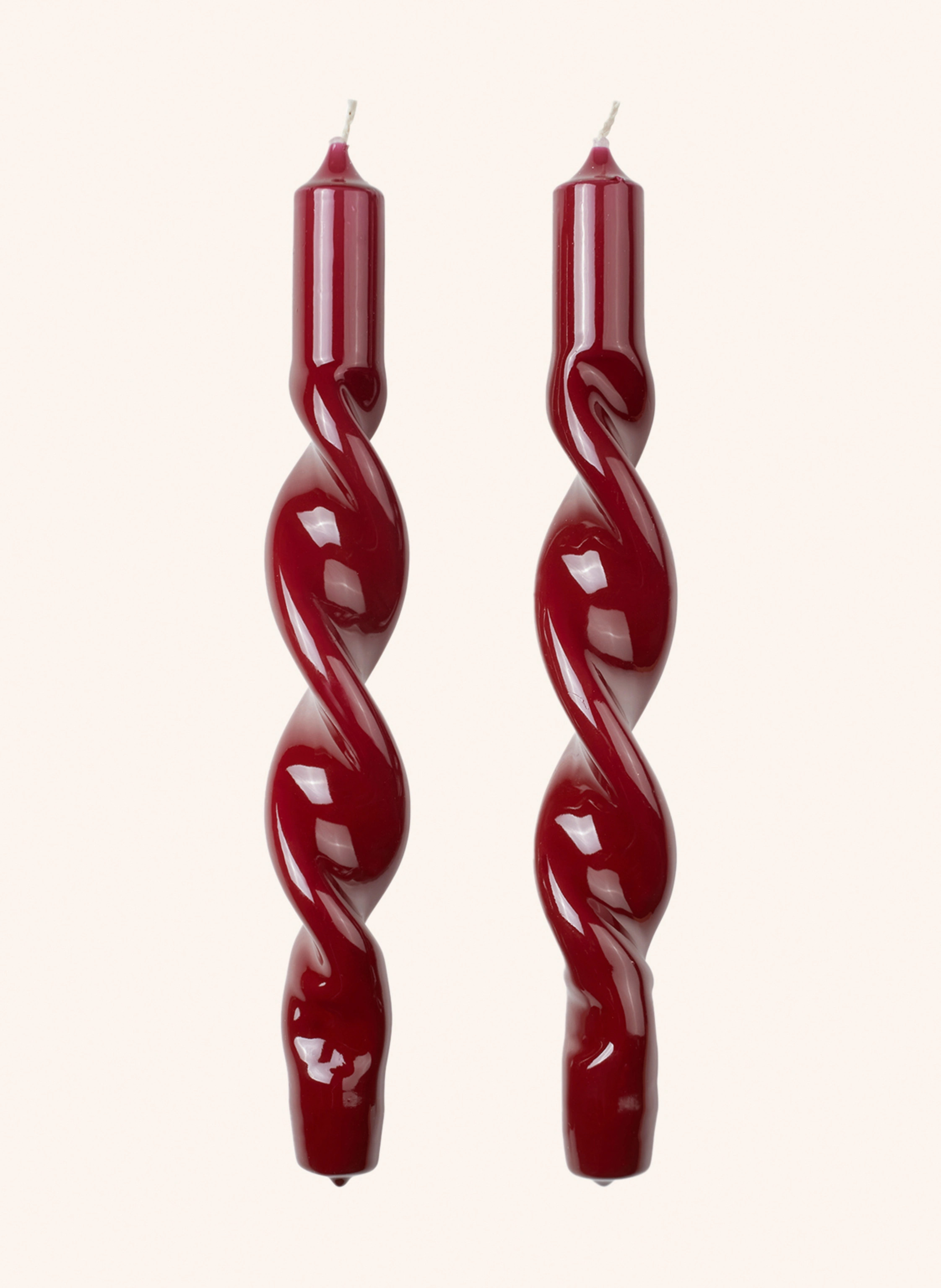 BROSTE COPENHAGEN 2er-Set Stabkerzen GLOSSY TWIST in dunkelrot