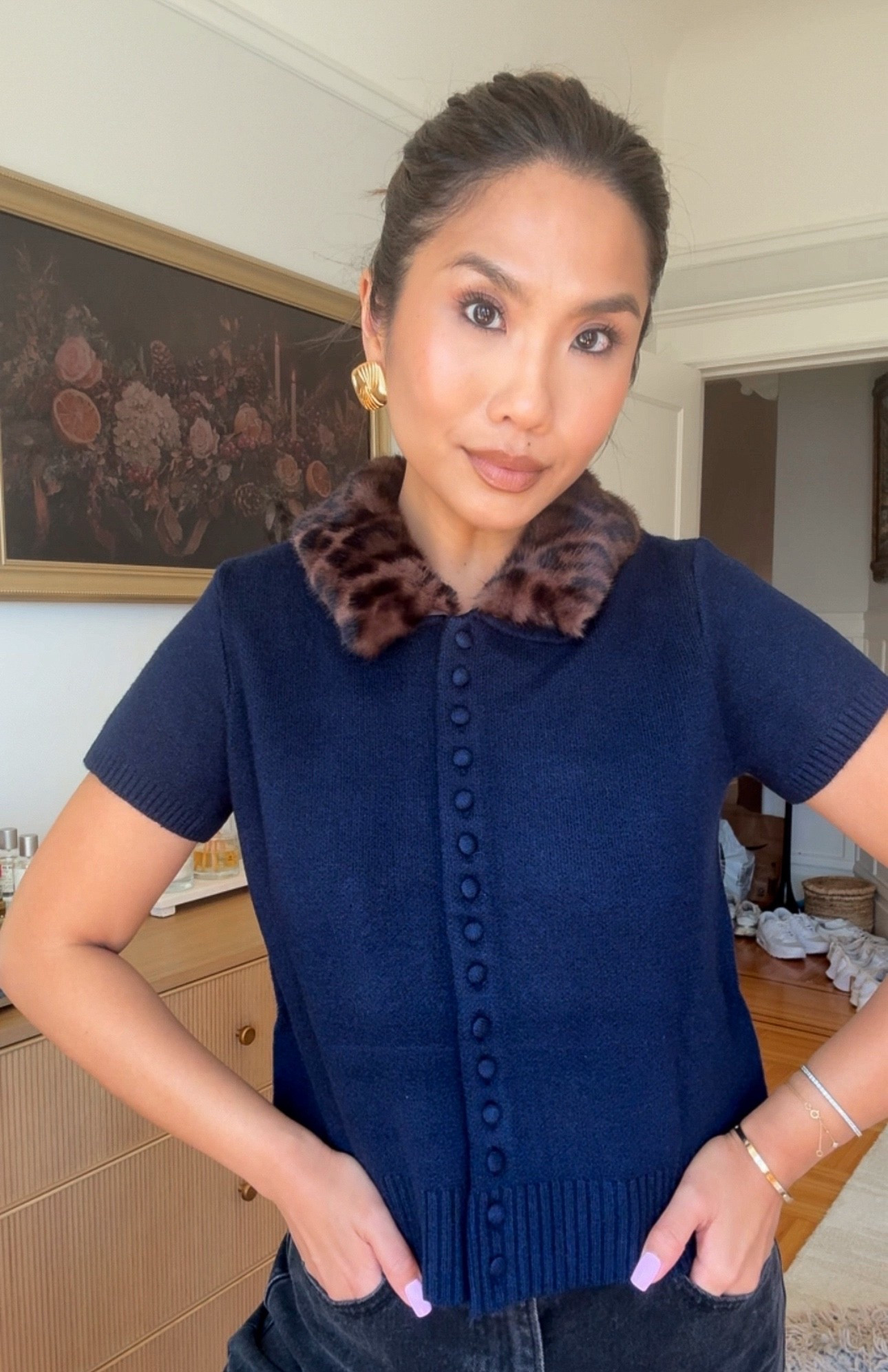 My faux fur collar cardigan is restocked!! So chic!