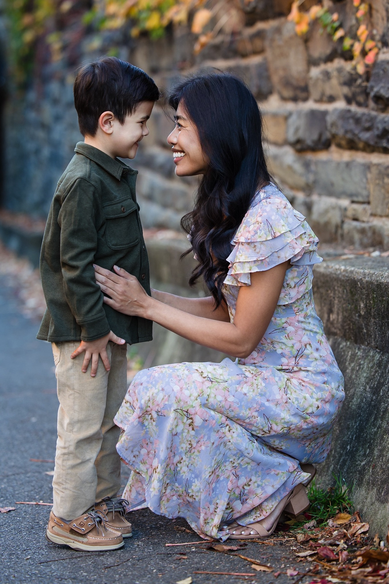 Mommy and me spring family photos neutral dress chambray shirts boys button downs