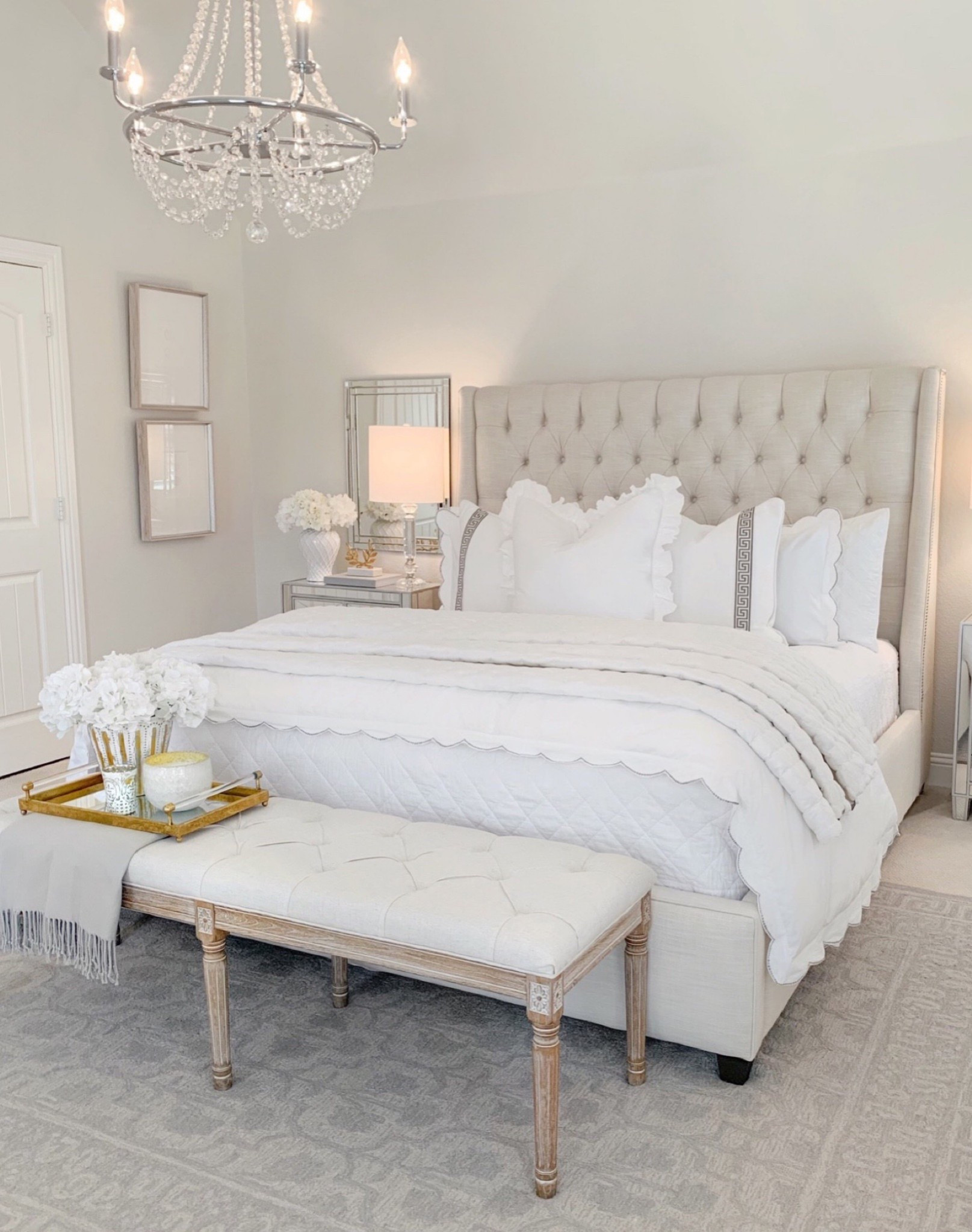 Under $300 skirted benches! ✨ blue bench, white bench, ruffle bench, oversized bench, bedroom, Lillian August furniture tjmaxx finds #tjmaxx @TJ Maxx