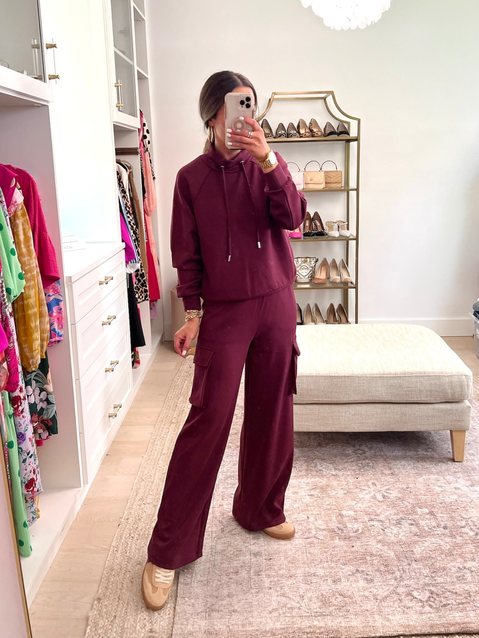Loving these new fall finds!! Size down to a 0 in the Scoop wide leg jeans in the two colors. Also size up to a M in the wine colored T-shirt for a relaxed fit.
