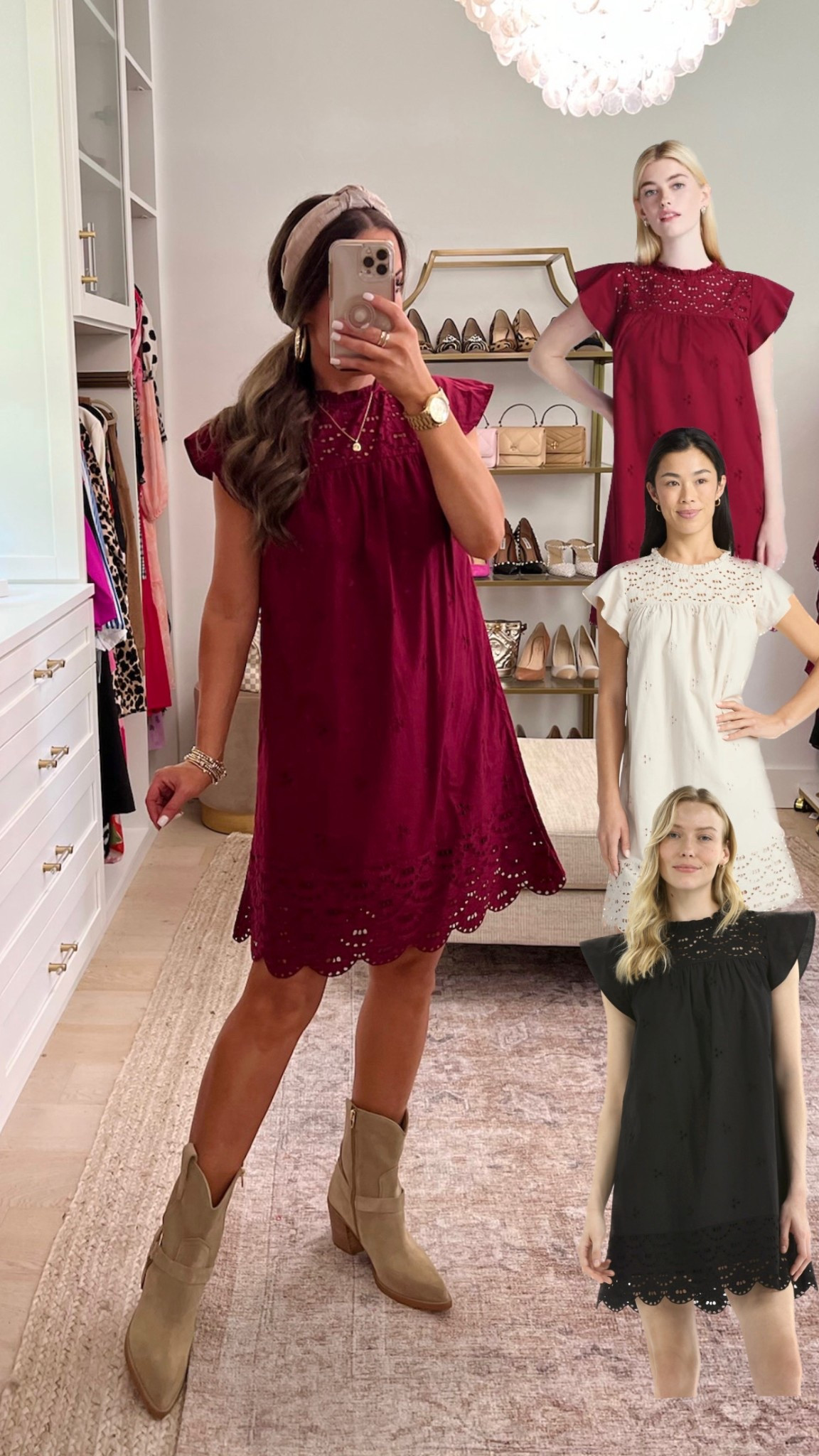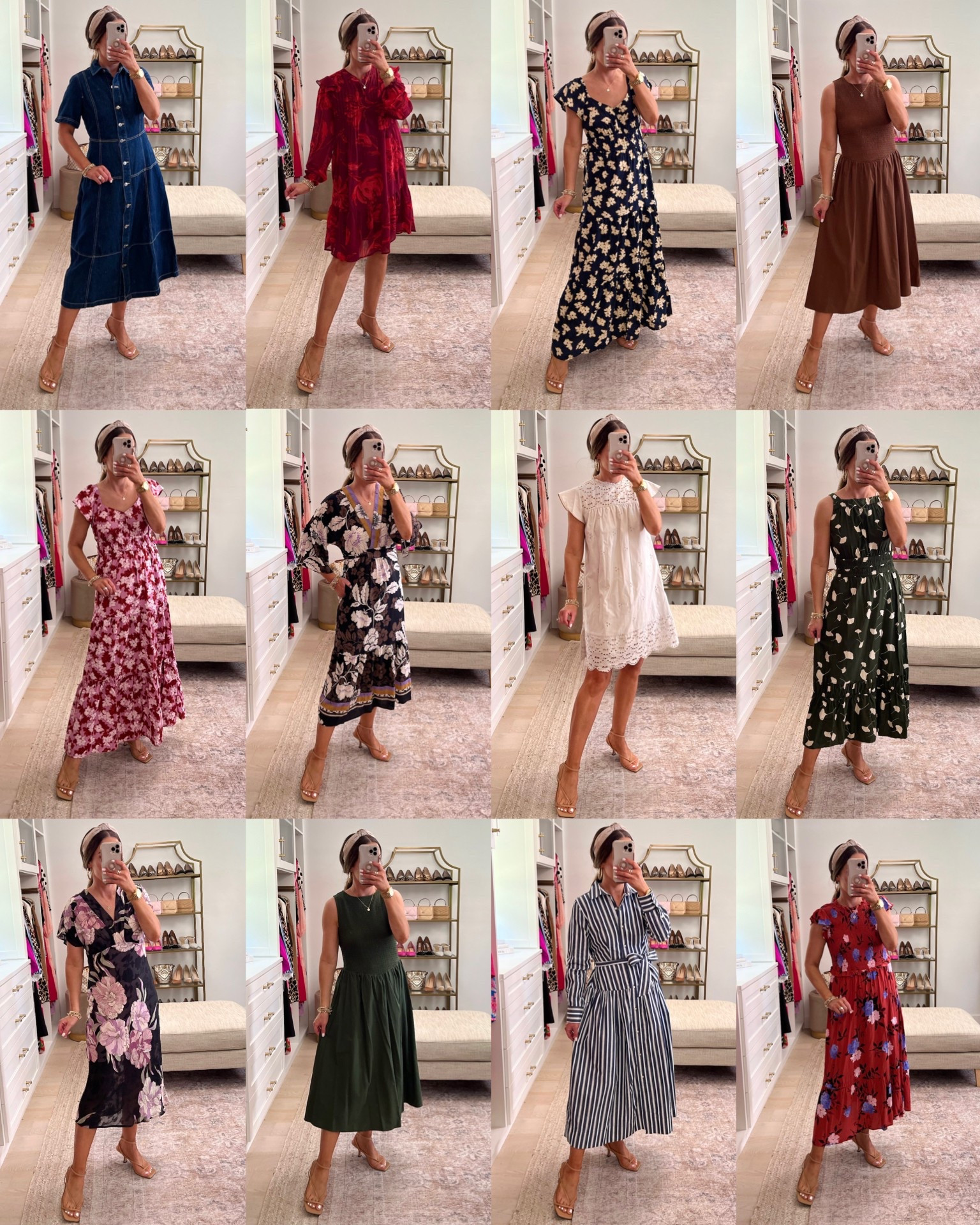 The best new Walmart dresses!!! Wearing sizes small in all but sized down to XS in the pin tuck mini dresses that hit at the knee in the red floral and the white leopard . If between sizes in any item then you could size down