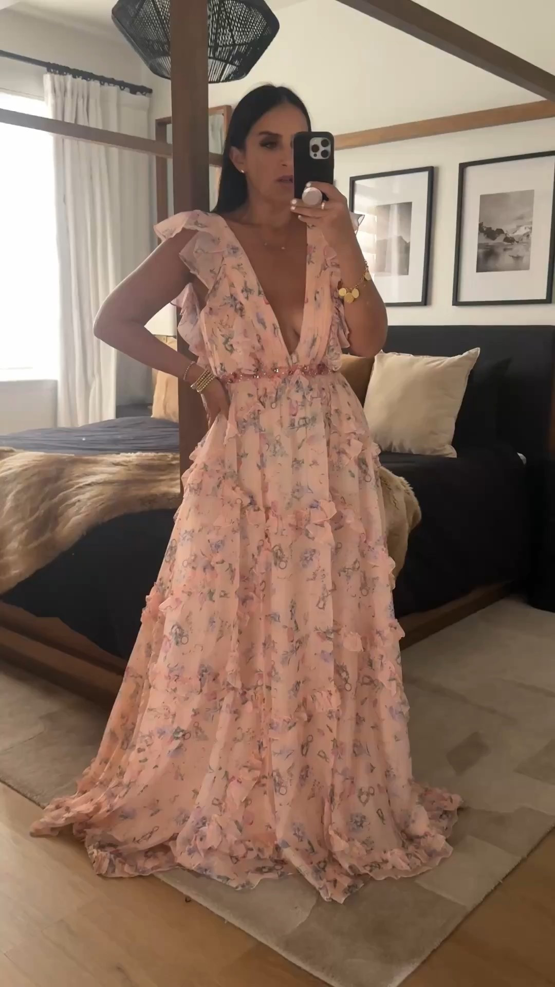 Farm Rio inspired Women's Boho Floral Cami wearing size medium.