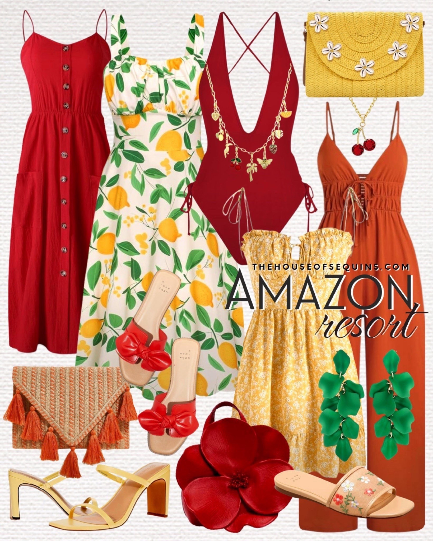 Shop Amazon resortwear and vacation outfits! Beach vacation date night finds, swimsuit coverup, maxi dress, Aritzia lodge pant look for less, raffia bag, crochet top, sun hat and more!
