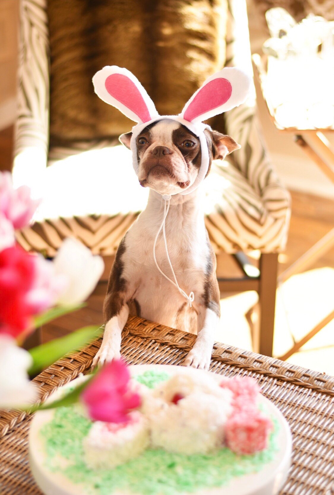 Next place the “ears” and “bow tie” on your serving try and frost.